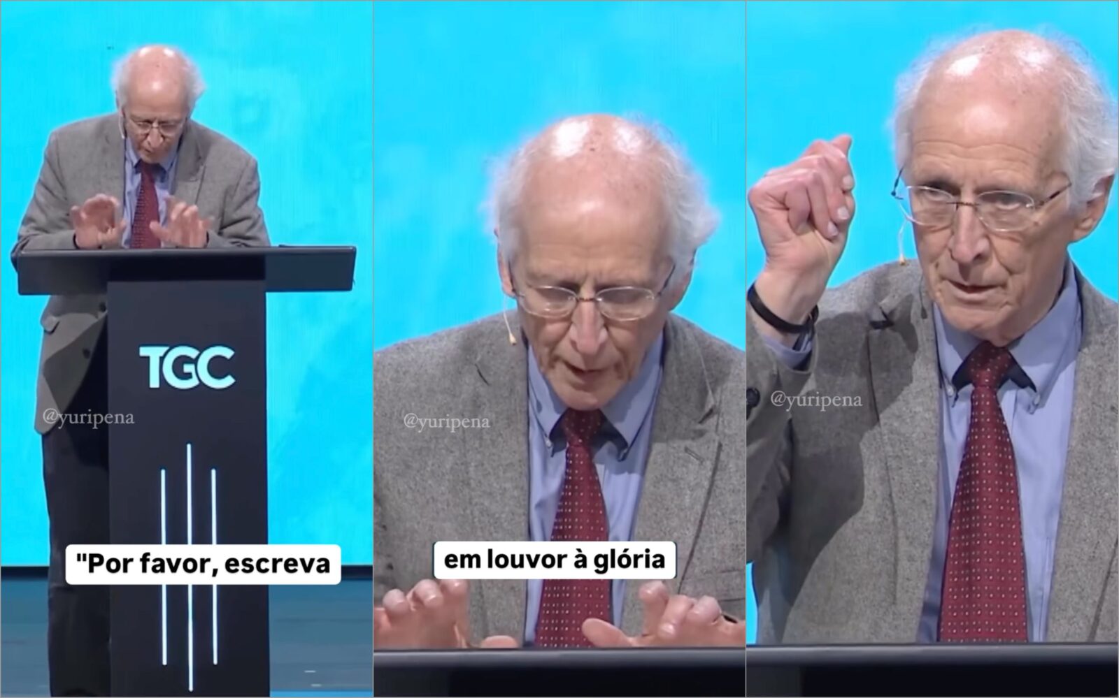 O público que participava do evento reagiu com risos, mas o pastor seguiu: “Três segundos depois, isso foi o que eu recebi: ‘Gracioso Pai, nos rendemos diante de Ti, o soberano Senhor da história e da redenção. Desde a eternidade era Teu plano derramar graça sobre pecadores imerecedores, através do sangue de Seu Filho amado. Nós Te louvamos pela glória da Tua misericórdia imerecida, sem medida, manifesta em Cristo crucificado e ressurrecto. Que as nossas vidas, redimidas e santificadas pelo Seu Espírito, sejam vasos de louvor para a riqueza da Sua graça. A Ti seja a glória para sempre e sempre. Amém”.