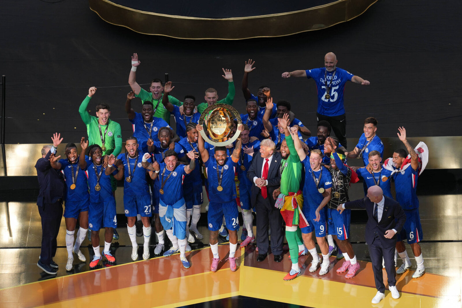 O presidente dos Estados Unidos, Donald Trump, esteve presente para entregar o troféu no MetLife Stadium ao Chelsea, depois que o time da Premier League derrotou o Paris St Germain por 3 a 0 diante de uma multidão entusiasmada.