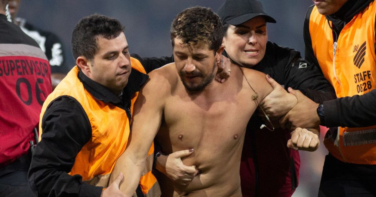 Tivemos no último meio de semana o jogo entre Athletico e Corinthians na Arena da Baixada e tivemos uma situação lamentável que foi a invasão de campo por um torcedor que estava na parte inferior do estádio. Obviamente que esse torcedor era torcedor atleticano, tendo em vista que os seguranças estavam levando a camisa que estava usando, camisa do Athletico Paranaense. Felizmente, ele não era sócio do clube. Mas o clube tomou medidas administrativas contra o ingresso dele nas próximas partidas. Lamentavelmente, esse fato veio a acontecer.