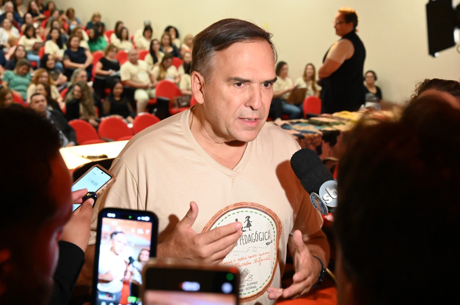 O prefeito Sandro Mabel destacou a importância da formação e qualificação dos docentes da Rede Municipal de Ensino de Goiânia, durante a abertura do Projeto Tessituras Pedagógicas: diálogos e ações com quem atua na Educação Infantil, nesta segunda-feira (17/2), na Escola de Formação de Professores e Humanidades da Pontifícia Universidade Católica (PUC-GO). Trata-se de um programa lançado pela Prefeitura de Goiânia, por meio da Secretaria Municipal de Educação (SME).