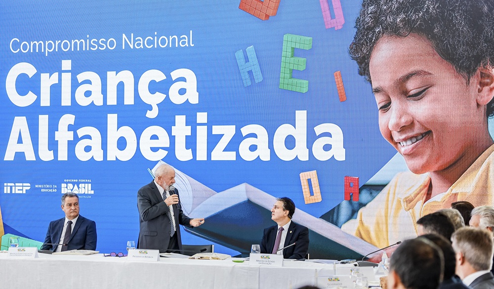 Em maio de 2024, o governo Lula apresentou o novo Indicador Criança Alfabetizada, que apontava 56% de crianças alfabetizadas no segundo ano do ensino fundamental, em 2023. Pelo Saeb, método utilizado há mais de 30 anos no Brasil, essa taxa seria de 49,3% (Foto: Ricardo Stuckert / PR )
