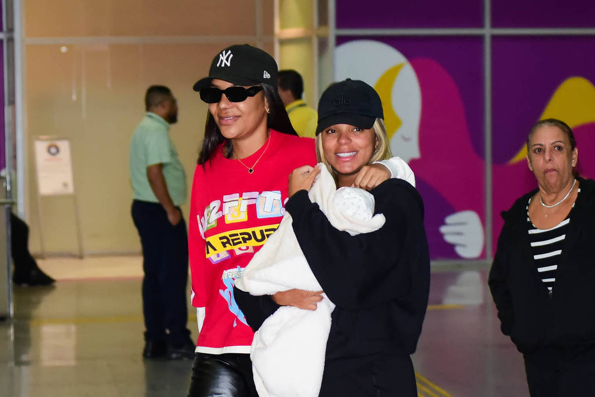 A cantora Ludmilla e a mulher, a dançarina Brunna Gonçalves, desembarcaram no Aeroporto do Galeão, no Rio, na manhã desta sexta-feira (30), com a filha Zuri nos braços.