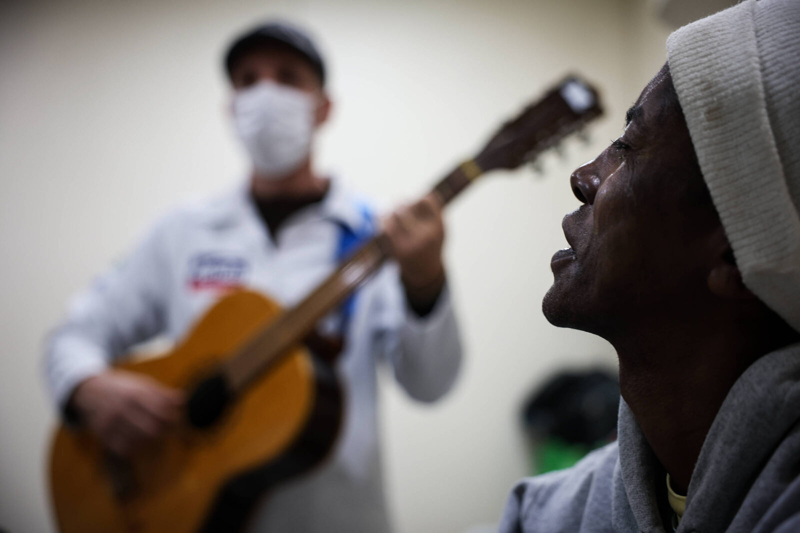 Para Geraldo Orlando, não se trata apenas de entreter ou provocar alegria. Formado em musicoterapia, com experiência prévia em cuidados paliativos, ele afirma que o trabalho com música nos hospitais é um tipo de cuidado que atua não só sobre o corpo, mas também sobre o humor dos pacientes.