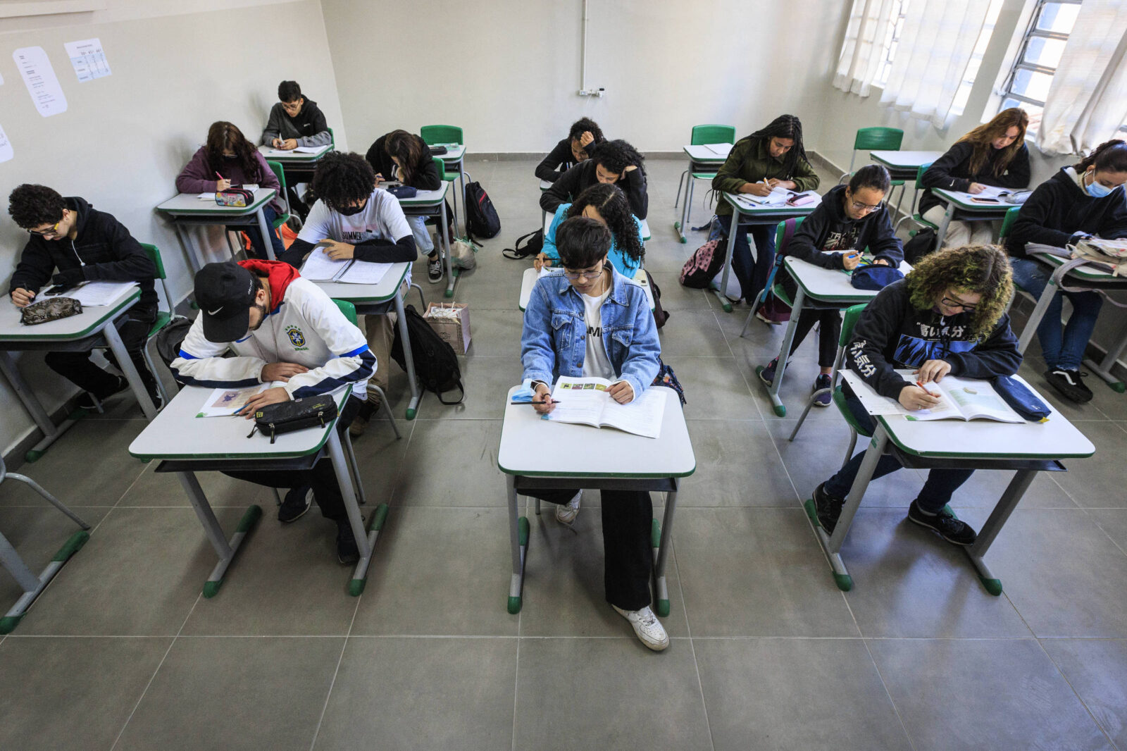 Para aqueles que estão agora no 2º ano, a prova de múltipla escolha vale 25%, enquanto a de 2023 valia 15%. Em 2025, quando esses estudantes estiverem na 3º ano, a prova de múltipla escolha terá peso de 40%, e a redação, de 20%.