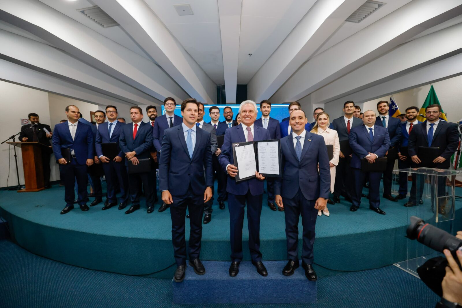 O governador Ronaldo Caiado empossou, nesta quinta-feira (06/03), juntamente com o vice-governador Daniel Vilela e o procurador-geral do Estado, Rafael Arruda, 20 novos procuradores de Goiás. A solenidade, que aconteceu no Auditório Mauro Borges do Palácio Pedro Ludovico Teixeira, marca as primeiras nomeações de uma lista com 38 aprovados no 15º Concurso Público da Procuradoria-Geral do Estado (PGE-GO).