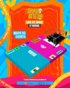 A organização do Samba do Setor liberou os detalhes de como a Arena Pronaica, na Cajazeiras 10, será montada para receber o fenômeno Suel. Pela primeira vez, ocupando o maior palco do bairro de Cajazeiras, o evento promete uma estrutura digna de grandes festivais, mas sem perder o clima de “pagode de bairro” que a gente ama. Compre seu ingresso aqui.