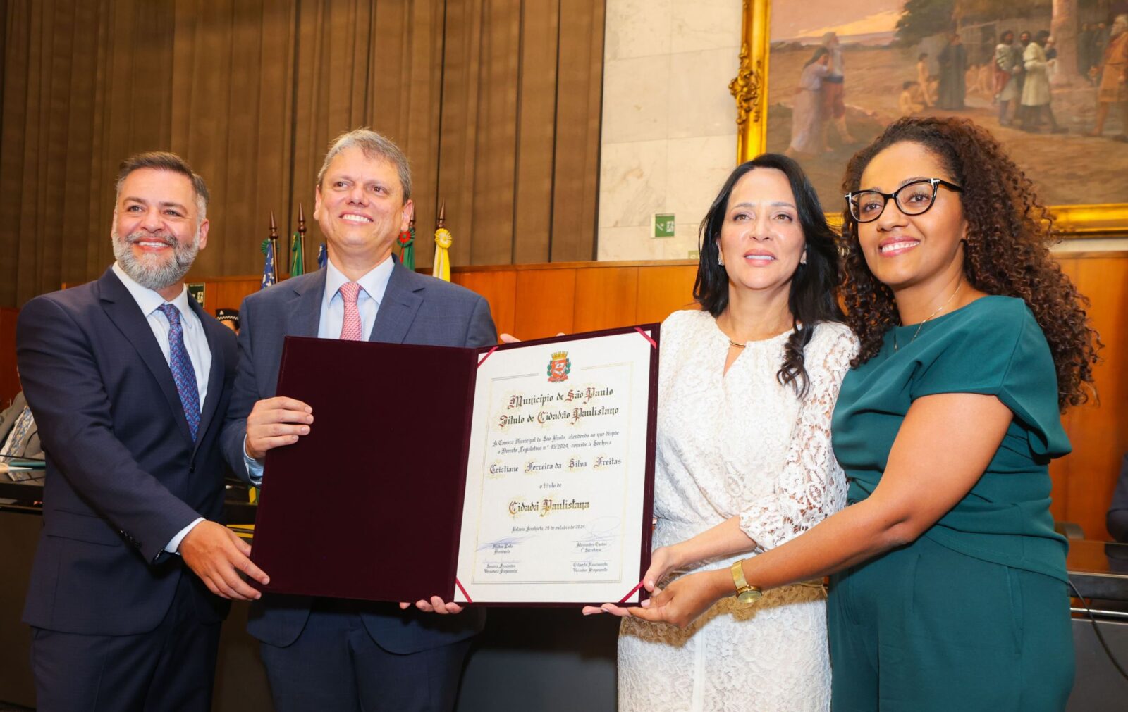 Na última sexta-feira, 7 de março, véspera do Dia Internacional da Mulher, a primeira-dama do estado de São Paulo, Cristiane Freitas, recebeu o Título de Cidadã Paulistana em sessão solene na Câmara Municipal de São Paulo.
